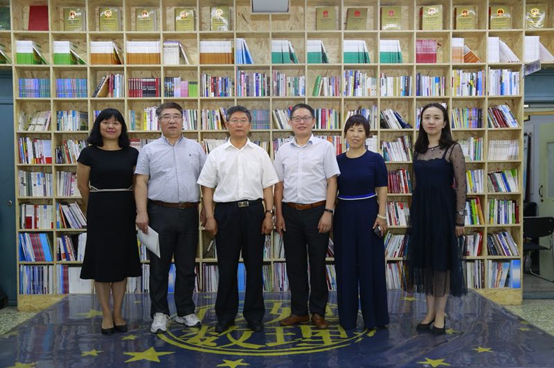 栾立明书记、传媒学院领导班子与方卿院长、徐建华教授在传媒学院“悦读吧”合影留念。