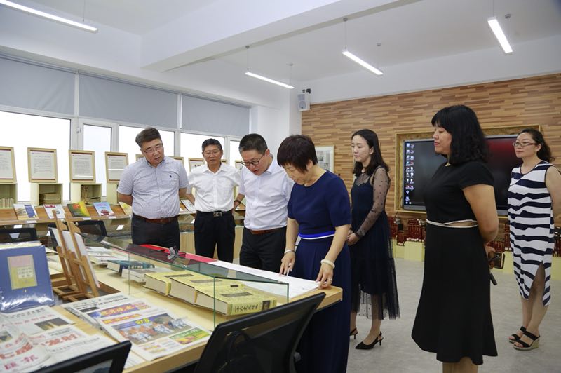 交流会议结束后,学校党委书记栾立明、传媒学院领导班子陪同两位客人首先参观了吉林省社会科学重点领域研究基地——文献展列室。方卿院长、徐建华教授对文献展列室收集的珍贵的书、报、刊及相关印刷产品和设备称赞不已,并亲自操作手凸版印刷机印刷。