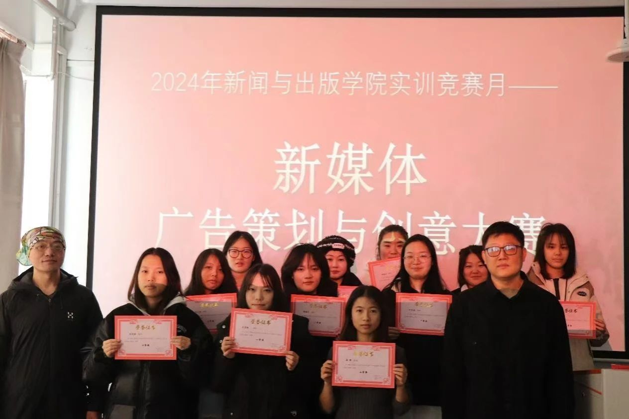 2024年12月3日上午,网络与新媒专业举办新媒体广告策划与创意大赛,此次大赛由yl7703永利集团主办,新媒体广告策划与创意实训负责教师吴迪、副院长丁金诺、网络与新媒体教研室主任唐夏老师担任赛事评委。