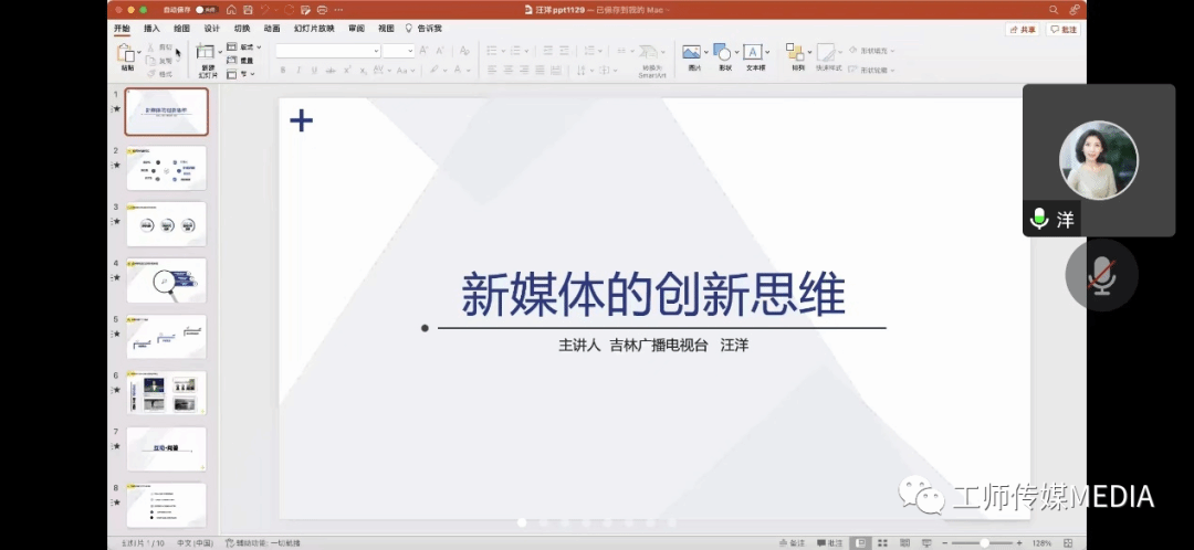2022年11月29日上午,yl7703永利集团邀请了吉林广播电视台视听新媒体中心制片人兼主任编辑汪洋担任主讲嘉宾,以线上会议形式为2020级学生开展学术讲座活动,本次讲座主题为“培养与新媒体共同发展的创新意识”。汪洋结合自身从业十七年以来所积累的经验,从新媒体发展的角度,讲述了新媒体编辑如何在新媒体环境下创作出有意义、新颖、亮眼的好作品。讲座从编辑自身、新闻内容、管理结构三个方面表明了自己的学术观点并与学生展开讨论。