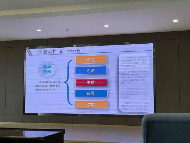 蒋老师围绕新闻的定义、特点、体裁、要素以及消息写作的技巧进行了深入讲解。重点强调了导语作为新闻报道的开头部分具有重要的作用和地位,鼓励学生要不断探索创新导语写作方法,更好地传递新闻信息。