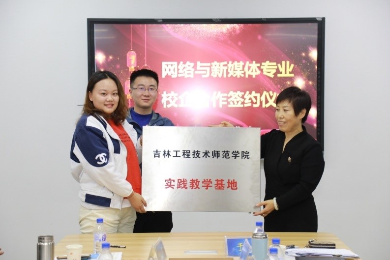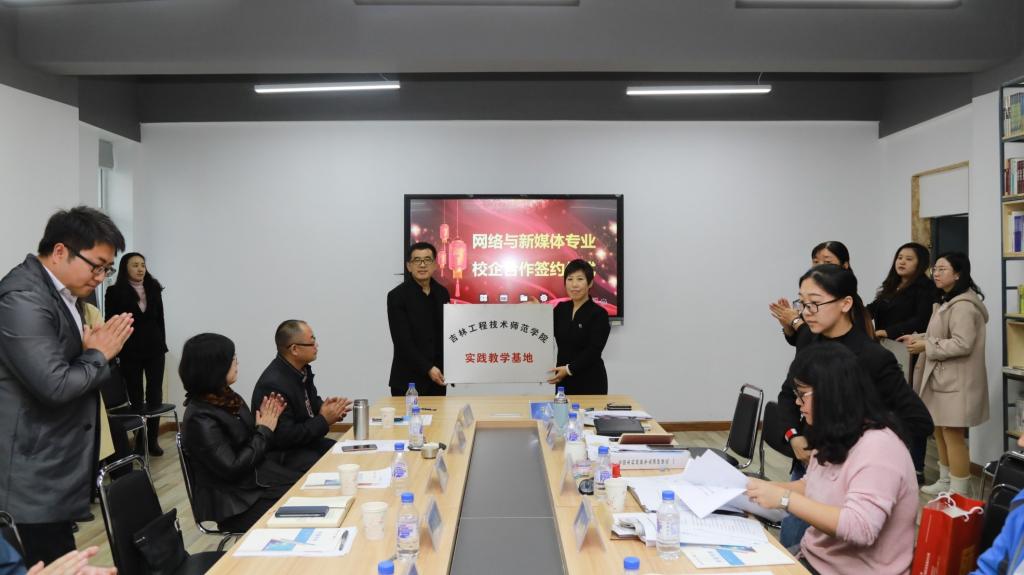 会上,吉林工师传媒学院网络与新媒体专业分别与吉林日报社融合媒体办、吉林出版集团外语教育有限公司、吉林省智狐传媒有限公司、东北师大理想软件股份有限公司、新文化报新媒体部和吉林省吉视文化产业园六家单位签订了校企合作协议,并进行了授牌仪式,这为未来网络与新媒体专业学生实习实训提供了良好的保障。