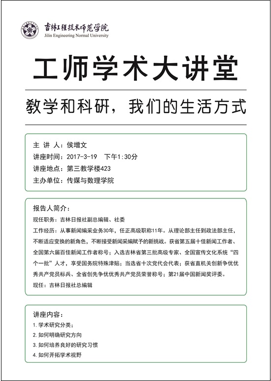 吉林日报社副总编辑侯增文老师以《教学和科研,我们的生活方式》为题,给老师们作了一场精彩的报告。