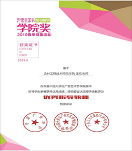 2019年6月26日,由我院编辑出版学专业冉鑫同学创作的一组作品荣获2019年中国大学生广告艺术节学院奖春季赛入围奖。王欢老师荣获“优秀指导老师”称号。