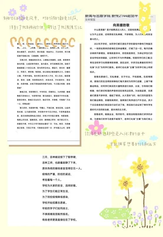 在此次征文活动中,同学们踊跃参加,上交了一系列优秀的作品。我们身边优秀的党员、团员、同学、志愿者,围绕自己或他人在学校疫情防控期间发生的感人事迹进行记录描述,讲述了工师人自己的抗疫故事、心得体会!