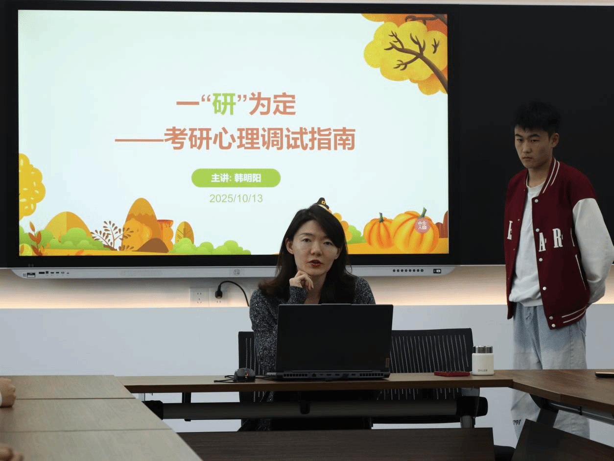 随后,韩明阳针对考研期间常见的焦虑、紧张、失眠等问题,提供了实用的心理调适建议。他鼓励同学们接纳焦虑并将其转化为动力,减少横向比较、强化积极暗示,保持规律作息与劳逸结合,多向亲友或老师倾诉,并推荐了呼吸放松法与两类轻松读物。