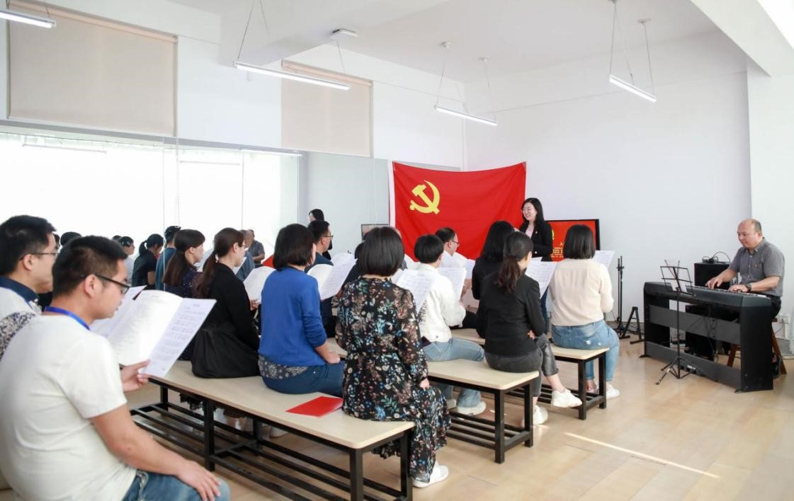 传媒学院党支部书记王义录与支部党员一起学唱红色歌曲《光荣与梦想》。伴随着“为了光荣与梦想,自强的意识势不可挡”的歌声,全体党员们振奋精神,歌声整齐嘹亮。