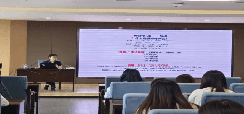 在讲座的最后,贾老师鼓励同学们将所学知识付诸实践,不断追求创新,并建议同学们持续关注行业动态,以提升个人专业素养。此次讲座不仅使同学们对新媒体产品制作有了更为深入的了解,也为他们未来在新媒体领域的职业发展奠定了坚实的基础。