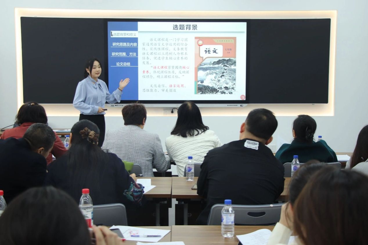 2023级学科教学(语文)专业王琦等6名研究生依次围绕各自选题,按照研究背景及意义、研究方法、研究内容、教学设计、论文总结进行了汇报。