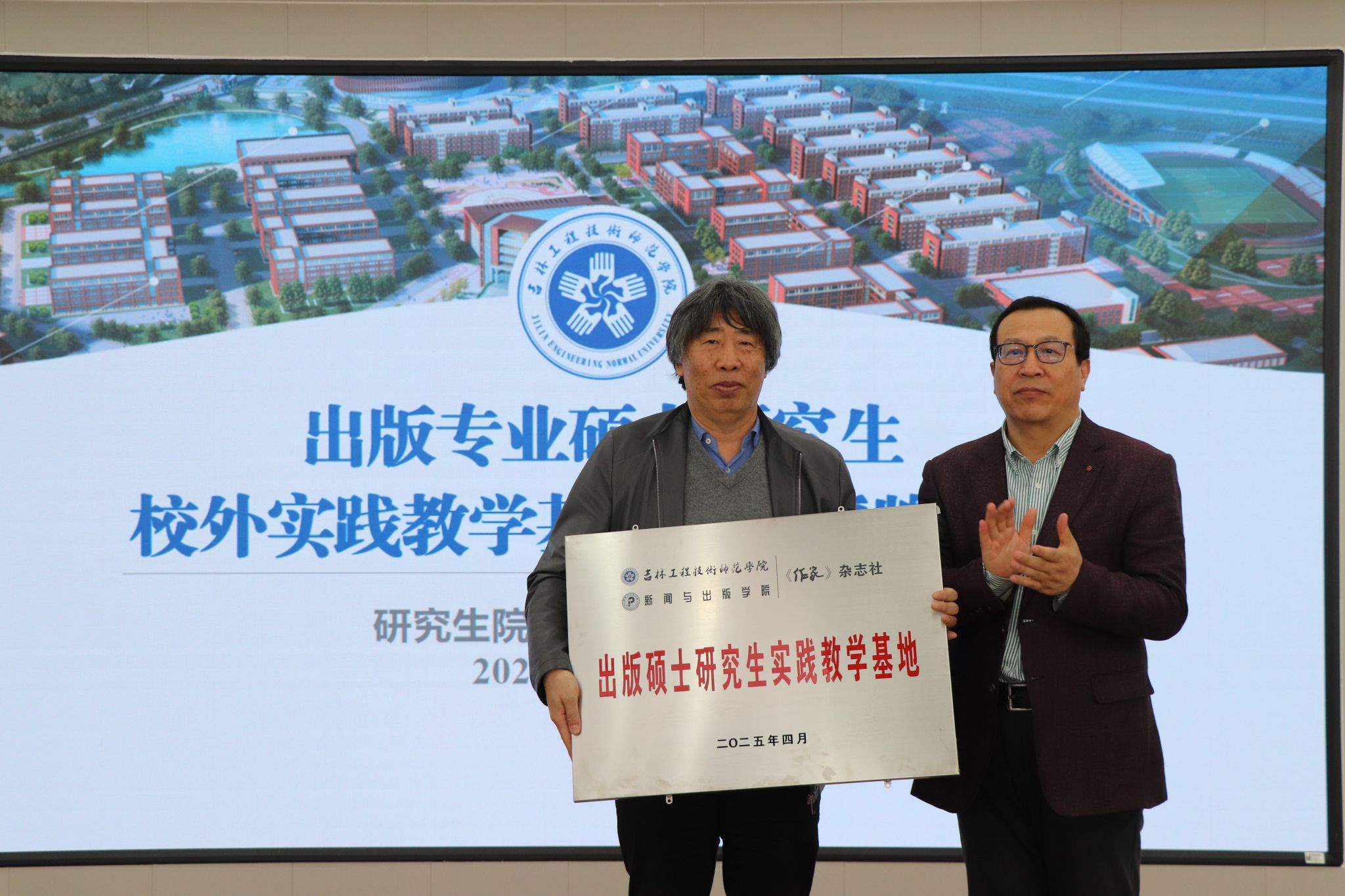 在与会嘉宾的共同见证下,yl7703永利集团与行业代表分别签署合作协议,学校领导为《作家》杂志社、吉林人民出版社、吉林出版集团公司教材事业部、北方妇女儿童出版社有限责任公司授予“出版硕士研究生实践教学基地”牌匾并颁发行业指导教师聘书。