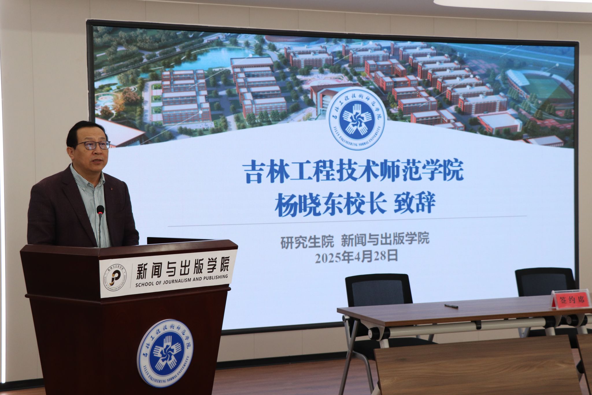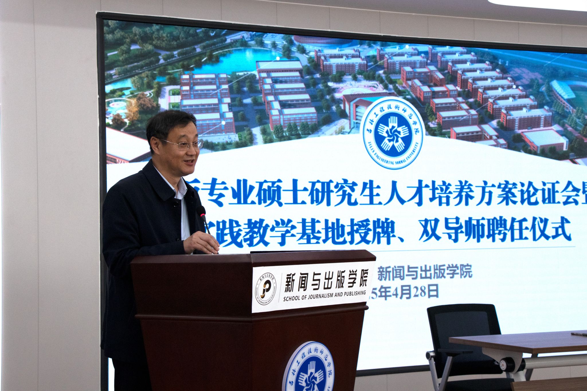 为深化产教融合,推动出版专业硕士研究生培养工作高质量发展,4月28日下午,学校举行出版专业硕士研究生人才培养方案论证会暨实践教学基地授牌、双导师聘任仪式。《作家》杂志社、吉林人民出版社、国家新闻出版署专家库、吉林省出版产品质量监测中心、吉林出版集团公司教材事业部、北方妇女儿童出版社相关代表,我校校长杨晓东出席会议并讲话。会议由副校长刘克平主持。